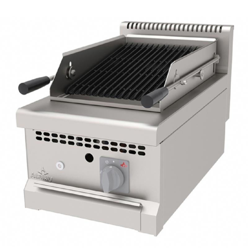 Atalay 700 Serisi Lavataşlı Izgara, Döküm Su Çekmeceli 40x70 cm DoğalgazlıPaslanmaz çelikten imal edilmiştir.Paslanmaz sac konstrüksiyonu ile uzun ömürlü kolay temizlenebilir ve hijyeniktir.Kullanıcıya her yönden rahatlık sağlayan ergonomik dizayna sahiptir.Emniyet ventilli, pilot ateşlidir.Dökümler lavataşa yağ damlamaması için dizayn edilmiştir.Yağ kabı hareketli çekmece şeklindedir.Izgaraların üstü eğik dökümlüdür.Pişirici yüzey 2 kademe hareketlidir.Sökülüp takılabilir brülör.Kullanılan seyyar çakmak sayesinde çakmak ısıdan zarar görmez.Teknik Özellikler Gaz Sarfiyatı Ng: 0.498 m³/hGüç Ng: 4.5 kWKilokalori Ng: 3869Net Ölçüsü: 400x700x300 mmPaket Ölçüsü: 470x800x530 mmNet Ağırlığı: 51 kgPaket Ağırlığı: 67 kg