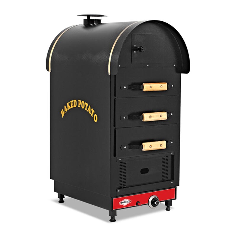 Empero 3 Çekmeceli Kumpir Fırını, GazlıLPG ve NG ile çalışabilme özelliği.Her çekmece için ayrı brulör.Çift izolasyonlu gövde.Emniyet ventili ve piezo çakmak ile kontrol.Paslanmaz çelik çekmeceler.Ebatlar: 500x700x1200 mmKapasite: 36-45Ağırlık: 73 kgNet: 0.42 m3Güç: 4.9 kW