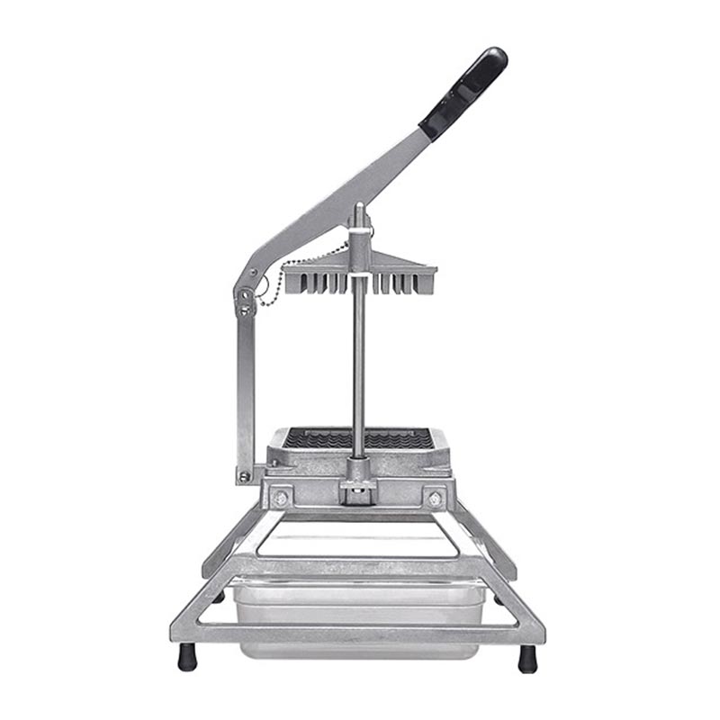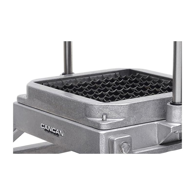 Cancan 1301-3 Sebze ve Meyve Doğrayıcı, 25x50 mm DiskRestoranlar, oteller ve hazır yemek şirketleri için mükemmel olan bu sebze doğrayıcı, tek bir hareketle bütün bir marulu doğrama kapasitesine sahiptir. Tertemiz kesimler sayesinde kısa sürede taze doğranmış marul kümeleri oluşturmanıza ve uzun saatler boyunca tazeliği saklamanıza yardımcı olur. Yenilikçi tasarımı ve pratik çeşitliliği ile her zaman sebzeleriniz bahçeden hazırlanmış gibi taze görünümlü kalır. Manuel kilitmele pimi itici bloğu kullanımına başlayana kadar yukarıda tutar ve iş kazalarını minimuma indirir. Hem itici blok hem de bıçak kolayca çıkarılıp temizlenebilir. Bu pratikliği ile zaman tasarrufu ve hijyen sağlar. Hassas bilenmiş paslanmaz çelik bıçaklar bükülmeyi önlemek için çerçeve içine yerleştirilmiş ve iç içe geçmiştir. Kaymaz ayaklara sahip açılı bacaklar, üniteyi sabit tutarak operatörün dengeli kesim yapmasını sağlar.Eşit kalınlıkta dilimler.Paslanmaz çelik bıçaklar.Manuel kilitleme pimiKaymaz açılı bıçaklarÖzel itici mekanizma25x 50 mm bıçakBoyutlar(cm):47 x 32 x 53Ağırlık(Kg):12