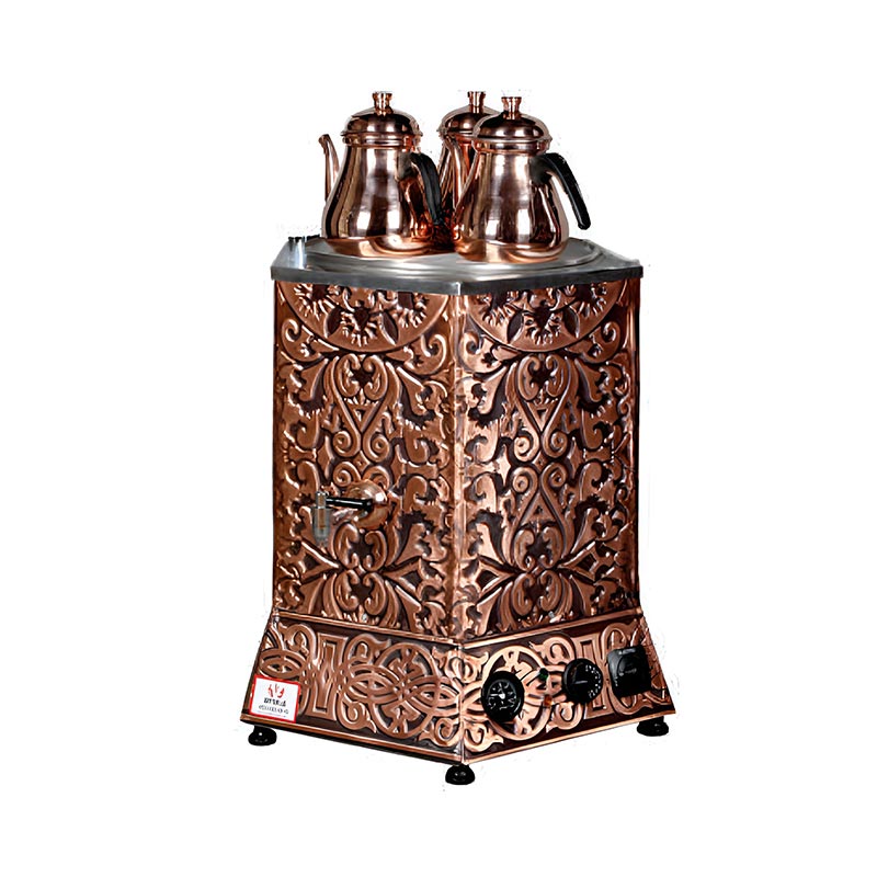 Anka APM500 Pro Max 4 Demlikli Çay Makinası , Elektrikli, 50L, BakırÜrün Açıklaması Elektrikle çalışabilme imkanı Akıllı (Otomatik) su sistemi Paslanmaz çelik su haznesi Isı kontrol sistemi Açılabilir üst kapak Kaynaksız paslanmaz su haznesi Kompakt dizayn El yakmaz Enerji tasarruflu Toplu tüketim için uygundurTeknik Özellikler Kapasite: 50L Ebat: 75X65X80 Ağırlık: 35 Kg Güç: 4000 W / 220VDemlikler Fiyata Dahil Değildir! Görsel Temsilidir!