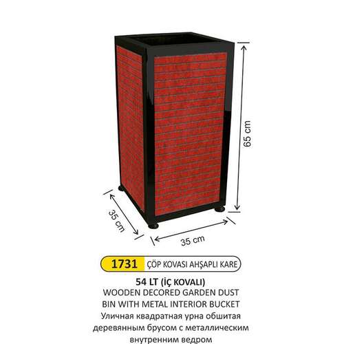 Arı Metal 1731 Bahçe Çöp Kovası Kare Ahşaplı Dekorlu Metal İç Kovalı