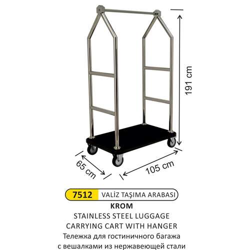 Arı Metal 7512 Valiz Taşıma Arabası Paslanmaz Çelik Askılı
