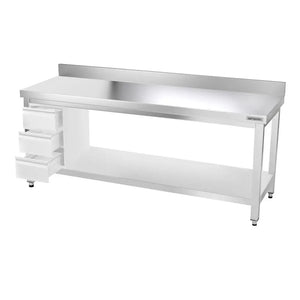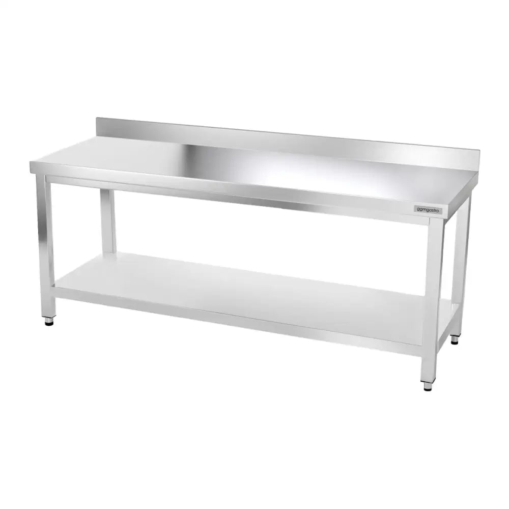 Galleyz Çalışma Tezgahı - Paslanmaz Çelik - PREMIUM - 2000x700mm - Alt Raflı, Destekli & Sırtlı