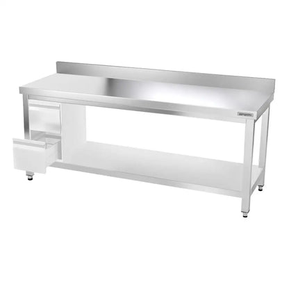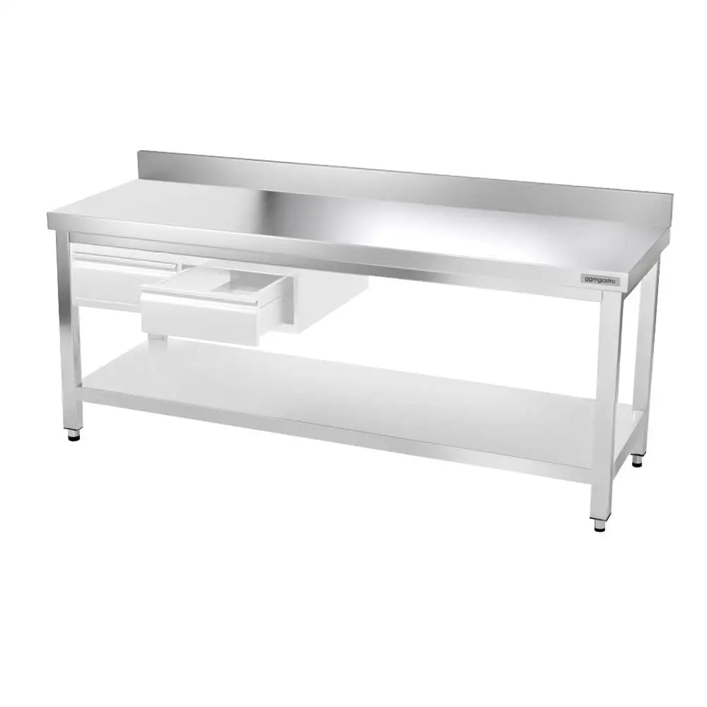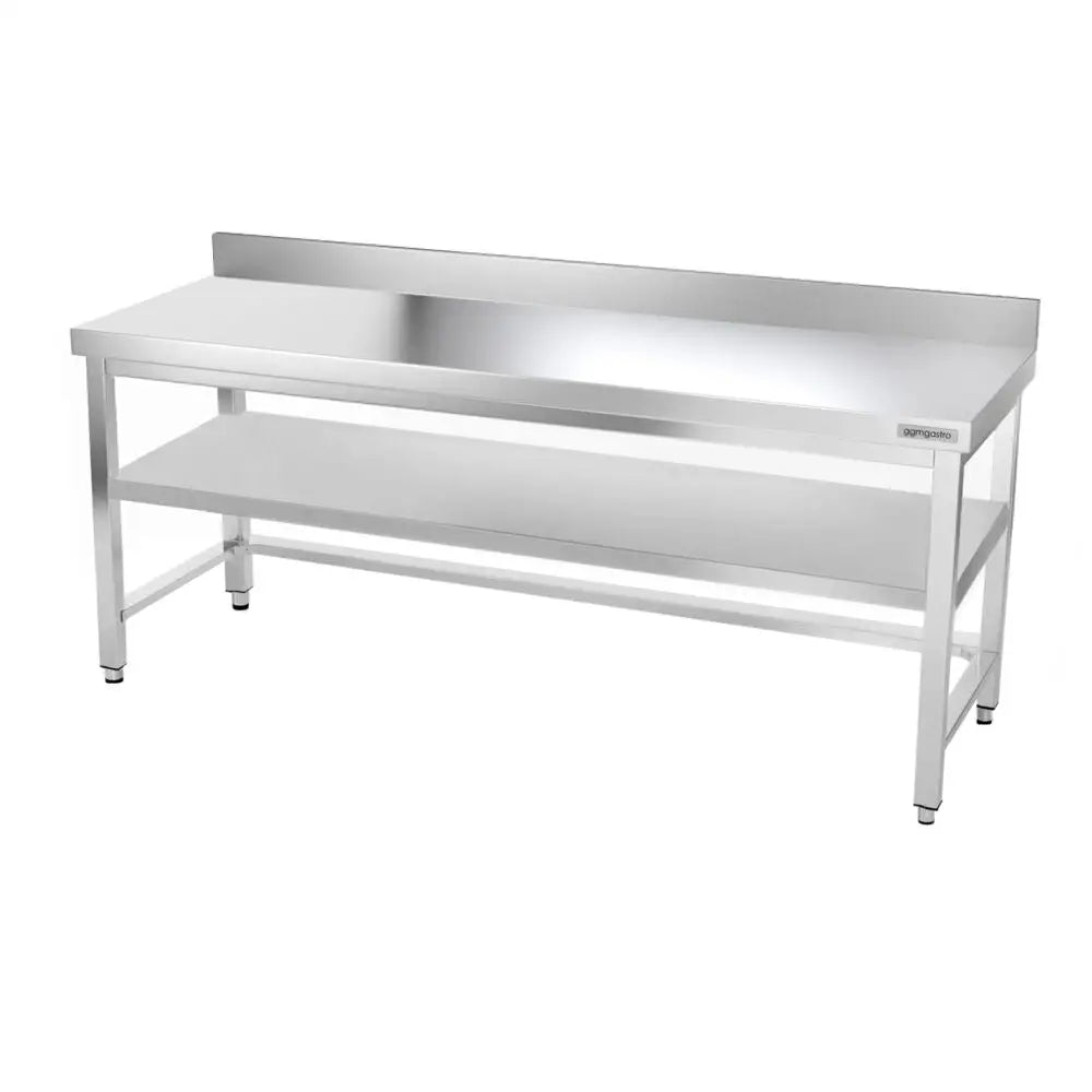 Galleyz Çalışma Tezgahı - Paslanmaz Çelik - PREMIUM - 2000x700mm - Alt Raflı Destekli & Sırtlı