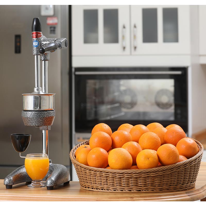 Cancan 0102 Profesyonel Tip Portakal Sıkma MakinesiKullanım AlanıNar,portakal,greyfurt,mandalina ve limon gibi narenciye meyvelerinin sıkılmasında kullanılır.Geniş iç hacim:Sıkma haznesinin genişletilmiş iç yapısıyla yakaladığı güç sayesinde kolay ve seri sıkma imkanı sağlar.Süzgeç: Geliştirilmiş dizaynıyla az posa geçirir. Meyvelerin süngerimsi yapısı, sıkılan meyve suyunun süzgeçten geri emilmesine müsaittir. Bunu önleyici kademeli ve açılı delik sistemi sayesinde yüksek sıkma performansı elde edilir.Süzgeç; paslanmaz çelik malzemeden imal edilmiştir. Geniş hacimli tas:Meyve presinin en büyük avantajlarından biri, ergonomik yapılı paslanmaz tas sayesinde büyüklüğü mevsimine göre değişen meyvelere tam uyum sağlamasıdır. Tasın geniş hacimli olması ve üst baskı ile süzgeç arasındaki standart mesafe ile rahat ve verimli bir çalışma imkanı sağlanır.Özel dizayn edilmiş üst baskı:Sıkılması tavsiye edilen tüm meyvelere uyum sağlayan yapısıyla her sıkışta muadillerine göre % 30 kazanç sağlar.Bardaklık:Bardaklığa konacak bir bardak sayesinde sıkım aralarında meyve suyunun dışarı akması önlenmiş olur.Not: Bardaklık profesyonel tip meyve presi içindir.Plastik ayaklar:Kaymayı önleyici plastik ayaklar sayesinde zemine tam oturum sağlanarak kolay bir sıkım pozisyonu sağlanmış olur.Satın almış olduğunuz ürününüzün kullanım ömrü 10 yıldır. Bu süre ürünün fonksiyonunu yerine getirebilmesi için gerekli yedek parça bulundurma süresidir.Garanti süresi 2 (İki) yıldır.Teknik Özellikler- Üründe elektrostatik gümüş dövme desenli boya kullanılmıştır.- Ürün ortalama 50 kg/saat sıkma kapasitesine sahiptir.- Özel şekillendirilmiş üst baskı ile birim alana 90 kg’lık sıkma kuvveti uygulanmaktadır.- Ağırlık : 5.750 kg- Genişlik : 18cm- Yükseklik : 55 cm- Derinlik : 24 cmEkonomik, kaliteli, ergonomik, dayanıklı