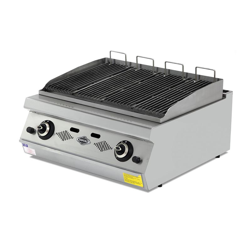 Empero 900 Plus Sulu Izgara, 80x90x30, DoğalgazlıNg ile çalışmaktadır.Magnet emniyet ventilli ve pilotlu musluklar.Tam modüllerde iki bölgeli ısıtma.Her brulör için piezzo çakmak ile kontrol.Çıkarılabilir yağ toplama haznesiKolay temizlenebilir ve hijyeniktir.Paslanmaz çelik gövde.Teknik ÖzelliklerEbat: 800x900x300 mmAğırlık: 128 kgNet: 0.22 m3Güç: 14 kWGaz Tüketim Değeri NG: 1,50 m3/h