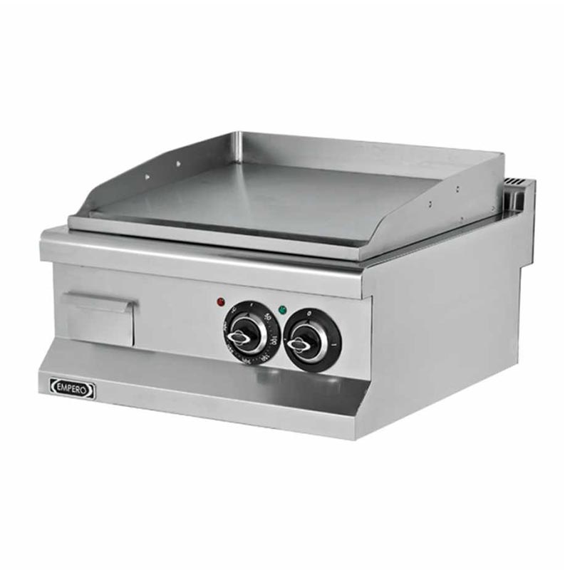 Empero Düz Pleyt Izgara, ElektrikliTermostatik kontrol.Tam modüllerde iki bölgeli ısıtma.Çıkarılabilir yağ toplama haznesi.Kolay temizlenebilir ve hijyeniktir.Paslanmaz çelik gövde.Üst tabla kalınlığı 1.2 mm, gövde 1 mm paslanmaz çelik.Limit termostatTeknik ÖzelliklerEbatları: 600x635x285 mmAğırlık: 58 kgNet: 0.17 m3Güç: 7.2 kWElektrik Girişi: 400 V. AC 3N PEKablo Kesiti: 5x2,5