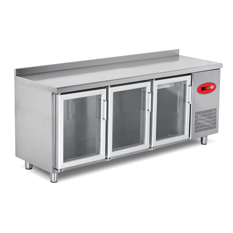 Empero Tezgah Tipi Buzdolabı, Camlı, 3 Kapılı, 500 LÇalışma aralığı; 0º C , + 5 º C (tropikal 43º C)220 V-230 V -1 +N -50 60 Hz elektrik gücü.”CFC Free” , R-134 A soğutucu gaz.40 kg/m3 yoğunluk.Elektronik, sıcaklık ve defrost kontrollü gösterge.Defrost esnasında otomatik su buharlaştırma.Sökülebilir havalandırmalı kompresör.Fanlı soğutma.48 mm kalınlığında “ozon dostu” poliüretan izolasyon.45 derecede sabit kendiliğinden kapanan kapılar.Alüminyum panelli,bakır borulu evaparatör.Ayarlanabilir, paslanmaz çelik raf yuvaları, plastik kaplama iç raf.Paslanmaz çelik gövde.Teknik ÖzelliklerEbat: 2000x700x850 mmAğırlık: 148 kgNet: 1.2 m3Güç: 0.20 kWKapasite: 500 litre