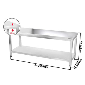 Galleyz Çalışma Tezgahı - Paslanmaz Çelik - PREMIUM - 2000x800mm - Alt Raflı