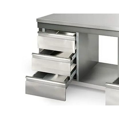 - Tekli çekmecelerin yanı sıra çekmeceli tezgahlar ve çöp kutuları monte edilebilir