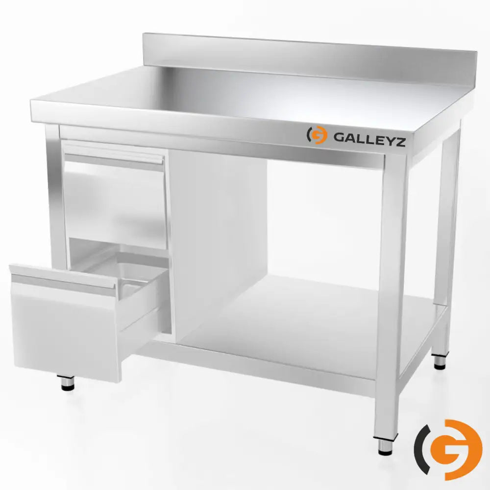 Galleyz Paslanmaz Çelik Çalışma Tezgahı - PREMIUM- 1000x600mm -Sırtlı alt raflı