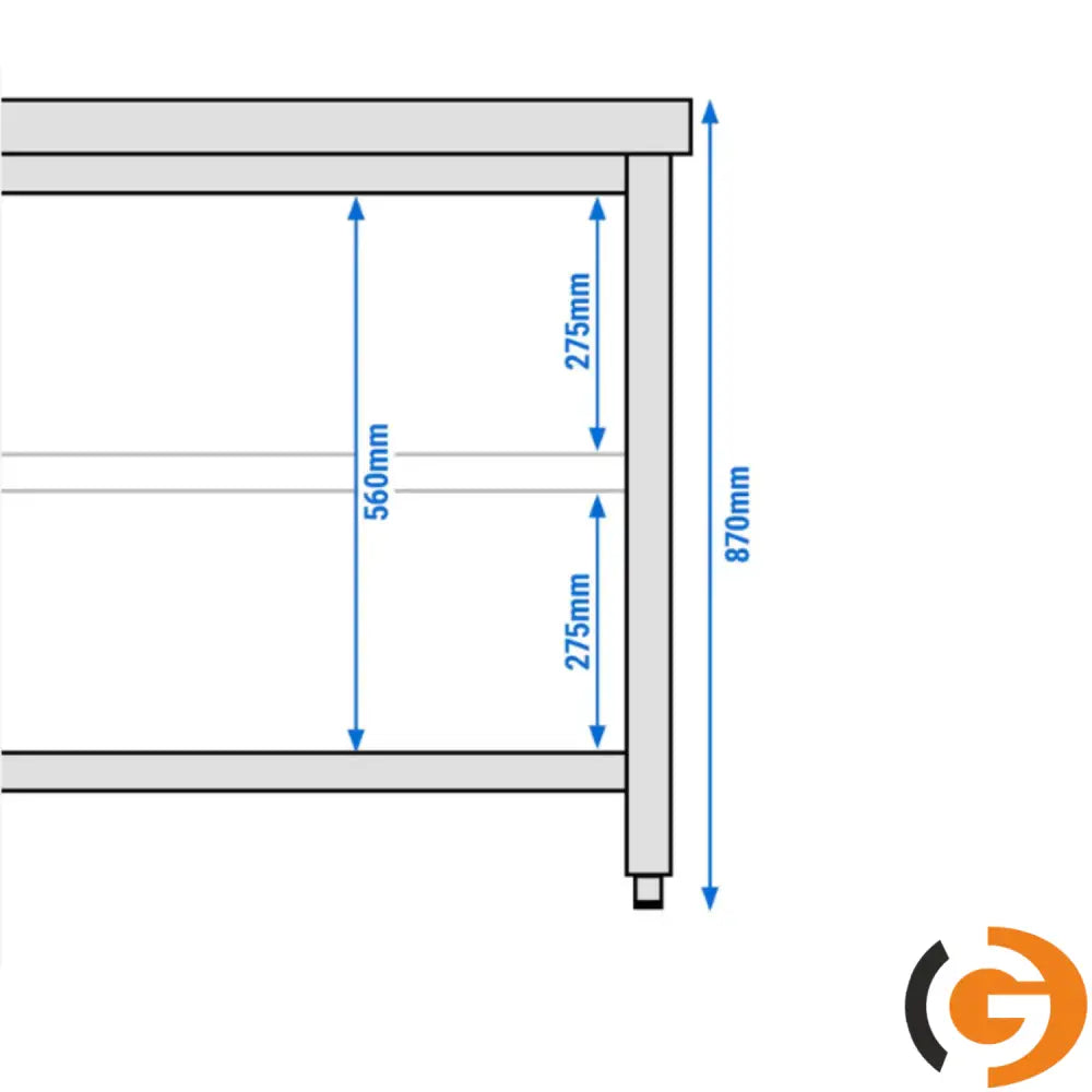 Galleyz Paslanmaz Çelik Çalışma Tezgahı - PREMIUM- 2000x700mm - Sırtsız alt raflı