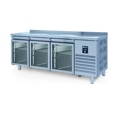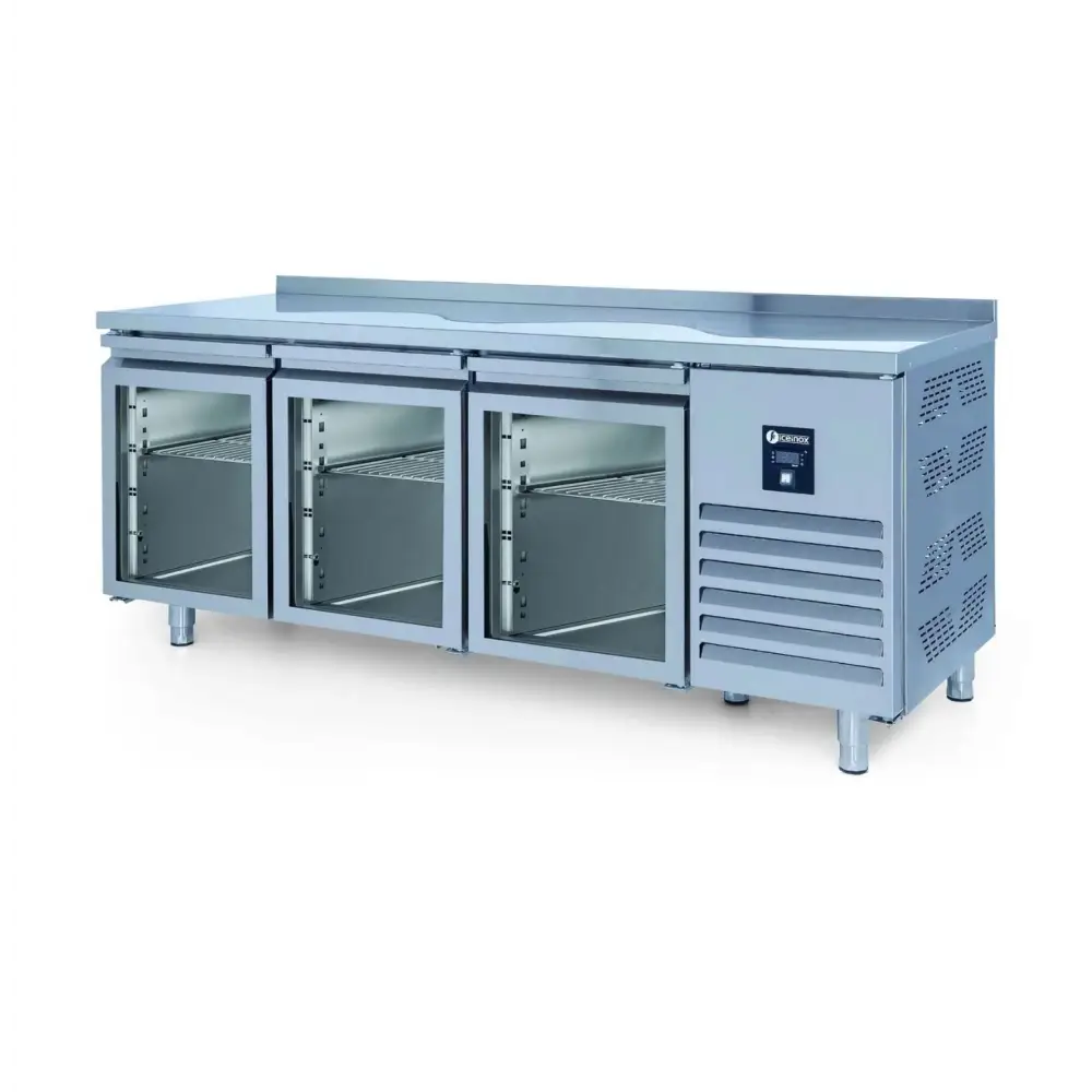 TEKNİK ÖZELLİKLER Kapasite: 440 lt Sıcaklık: -2/+8°C Voltaj: 230V / 50 Hz Enerji Tüketimi: 0,336 kW Ölçü: 200x60x85 cm Ağırlık: 146 kg Kapı Sayısı: 3 Paslanmaz Özelliği: 430 Buzdolabı Modeli: Snack – Cam Kapılı Dış ortam sıcaklığı +43°C %65 Nem Oranı Eşit sıcaklık dağılımı için yeni tasarım Sıfır ODP enjekte 42 kg/m3 çevre dostu poliüretan izolasyon Kolay okunur ekranlı dijital kontrol Ergonomik kapı ve kulpu sayesinde kolay açılma ve temizlik Patentli ‘Icecool‘ soğutma sistemi ile mükemmel verim ve enerji sarfiyatı Sıcak gaz defrost sistemi Atık ısı geri kazanımlı kondanzasyon Tüm buzdolapların marine versiyonları mevcuttur Marine versiyonları ‘Icecool marine’ sistemi, marine ayak ve raflar içerir Paslanmaz Özelliği: 430Kalite politikamız