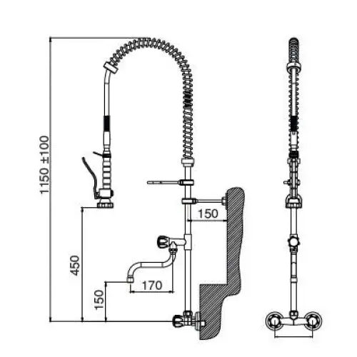 Tezgaha monte ön yıkama duş sprey ünitesi paslanmaz çelikten üretilmiştir.