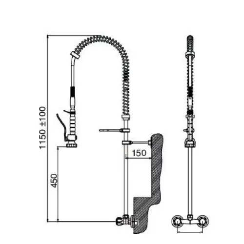 Tezgaha monte ön yıkama duş sprey ünitesi paslanmaz çelikten üretilmiştir.