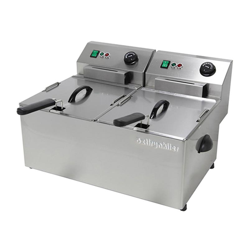 Öztiryakiler EF8D GN 1/2 Çiftli Fritöz, 8+8 L, ElektrikliPaslanmaz çelik gövdeli2 adet 1/2-200 monoblok fritöz gözlüÇıkartılabilir rezistans kutusu ve fritöz kabıÇalışma termostatı 60-190 °C arası sıcaklık kontrolü yapabilirEmniyet switchliEmniyet termostatlıAyakların yüksekliği ayarlanabilirTip: ElektrikliEn: 530 mmBoy: 430 mmYükseklik: 310 mmNet Ağırlık: 28 KgHacim: 0,07 m3Elektrik Gücü : 3+3=6Volt: 2x220/240 V / NPE (Monofaze)Frekans: 50/60Tank Hacmi: 8+8 LKoruma Sınıfı: IP 21