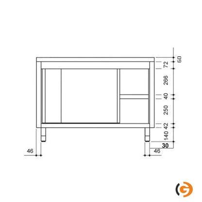 Paslanmaz Çelik Dolaplı Çalışma Tezgahı ECO -1000x600mm - Sürgü Kapılı