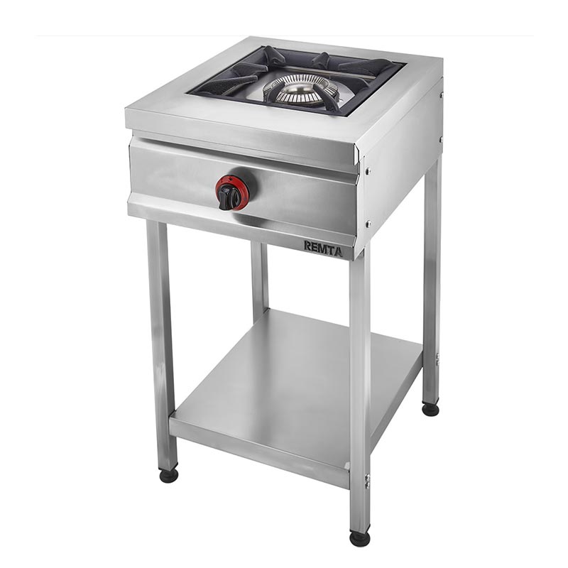 Remta CEJ21(L) Ayaklı Taban Raflı Lokanta Ocağı, 1 Gözlü, LPG Güçlü bek pişiriciler. Gaz emniyet sistemli. Paslanmaz çelik gövde ve ayaklar. Hijyenik, emniyetli ve uzun ömürlü. Demonte ayak ve raf sistemi. CE Belgeli ve Gazmer onaylı. TEKNİK ÖZELLİKLER Ürün Ölçüleri: 450x505x806mm Ağırlık: 16 kg Brülör: 2 Nolu Süper Yanış Toplam Gaz Gücü (QN): 3,8 kW Toplam Harcama (V) G20 (Doğalgaz): 0,40 m³/saat Toplam Harcama (V) G30 (LPG-Tüp): 0,30 m³/saat Havalandırma: 11 m³/saat Doğalgaz Çalışma Basıncı: 20mbar LPG(Tüp) Çalışma Basıncı: 30-50 mbar Garanti: 2 Yıl