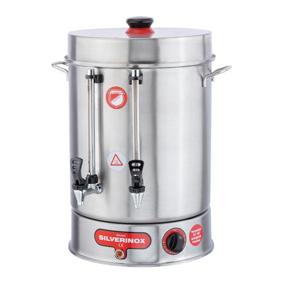 SilverInox Çay Makinesi, Metal Basmalı Musluklu304 kalite 18/8 krom çelikten imal edilmiştir.Termostat 90-92 °C aralığında tutunuz.24 saat sıcak su ve taze çay304 paslanmaz tüp rezistans kullanılmıştır.Metal sapları ile taşımada kolaylık sağlar.Üründe çay ve su seviyesini gösteren metal borular vardır.Termostat kontrolü ile enerji tasarrufu sağlar.Ölçüler: 48x48x60 cmAğırlık: 9 kgKapasite: 500 BardakGüç: 2750 W