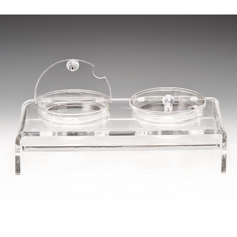Kaseli Kapaklı Teşhir StandıÜründe kapak mevcuttur 2 adet cam kaseye sahiptir Kase ebat: Ø 14 cm Stand ebat: 39x19 cm Ürün polikarbon malzemeden üretilmiştir Renk: Şeffaf